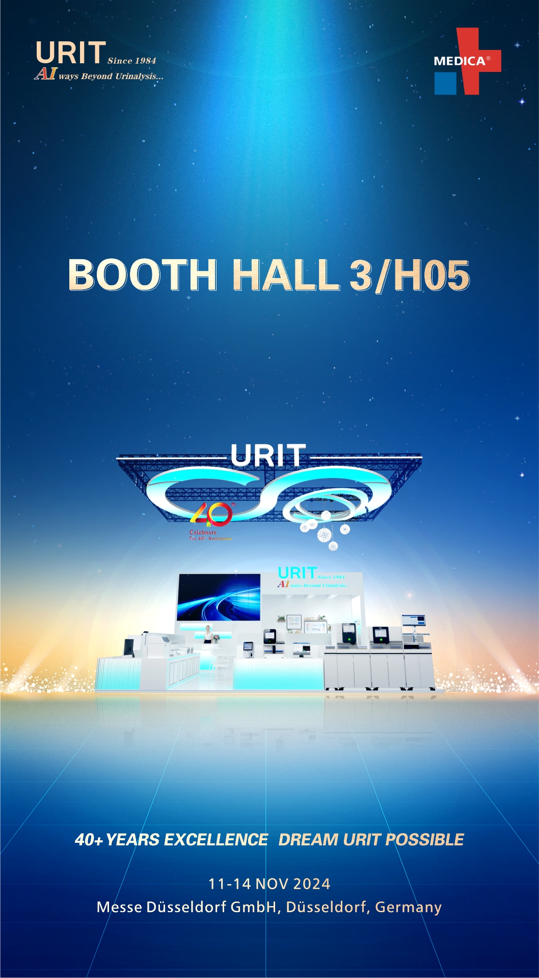 This exhibition is not only a showcase of products but also a collision of ideas and a spark of inspiration. URIT sincerely invites you to visit us in person and join our exploration journey, where we will witness the latest achievements in medical technology and experience the infinite charm of future healthcare together. Let us move forward hand in hand, opening a new chapter in medical technology at the MEDICA exhibition and creating a brilliant future together!